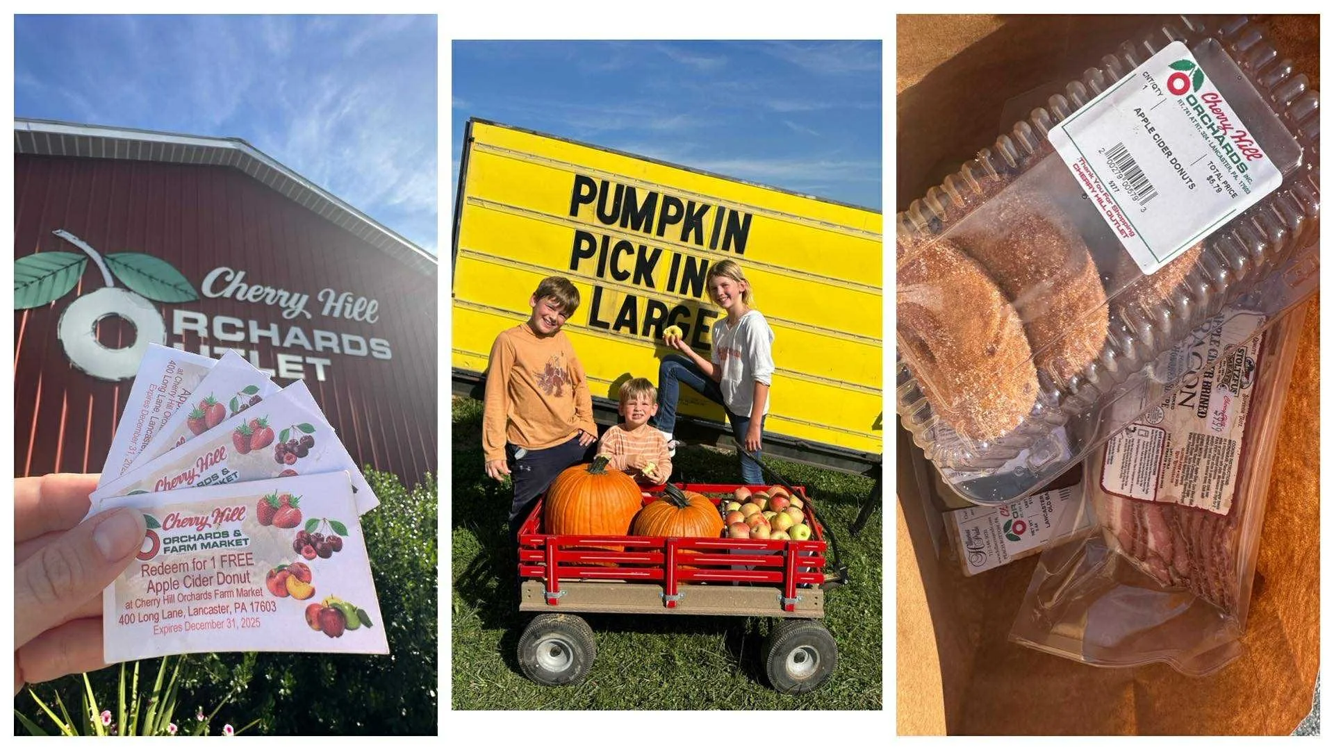 While there are several orchards and farms you can go apple picking or to a pumpkin patch in Lancaster, we chose Cherry Hill Orchards because of the huge farm market and garden center and that we could do both Apple Picking and Pumpkin picking for a really decent price.