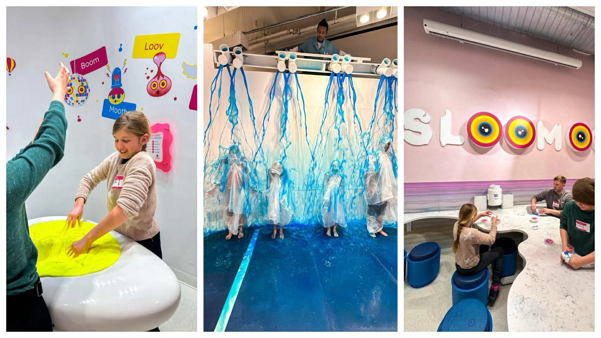 Sloomoo Institute is a huge hit with kids who love hands-on play. This interactive slime experience lets kids touch, stretch, and even customize their own slime creations in colorful, sensory-friendly rooms. We made our own slime, got to sling shot slime, make music with slime, and even got slimed! Sloomoo was so much fun.
