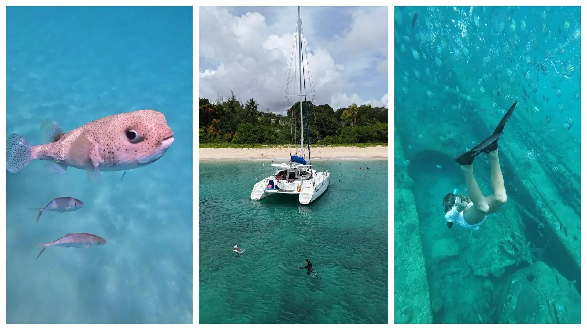I’ve personally sailed on Elegance, Silver Moon, and The Cat and The Fiddle, which are luxury options - Cat and the Fiddle being the top of the line. All offer open bars, food options, and swimming/snorkeling stops. The crews are attentive, keeping your drink filled and giving you advice on how to see the most turtles and fish.