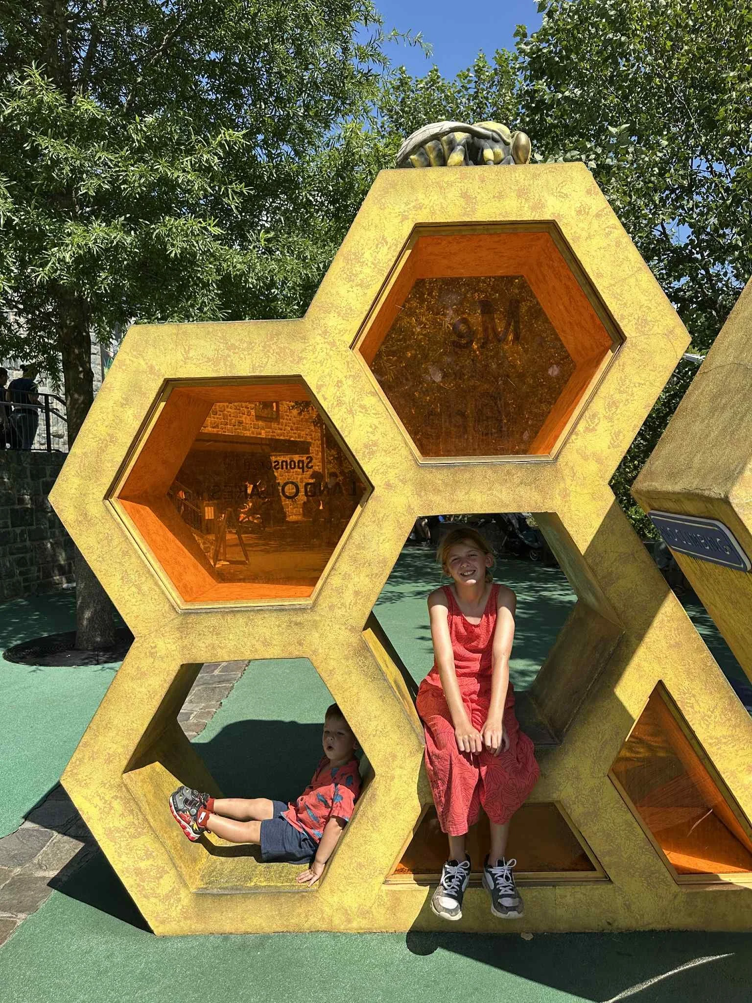 The kids finding some shade at the bee and me playground